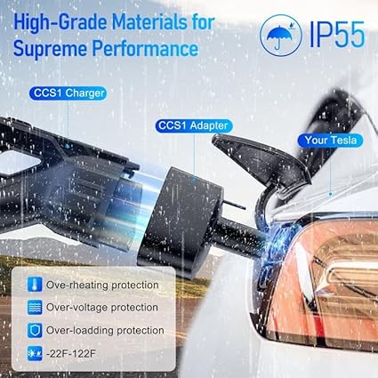 - 【ULTRA-FAST CHARGING】: Supercharge your Tesla Model S/3/X/Y with up to 250KW power for fast charging. Boost your Tesla battery’s range rapidly with CCS DC fast chargers (Please note that the actual charging rate will depend on your Tesla’s battery condition and the specifications of the charging station)”